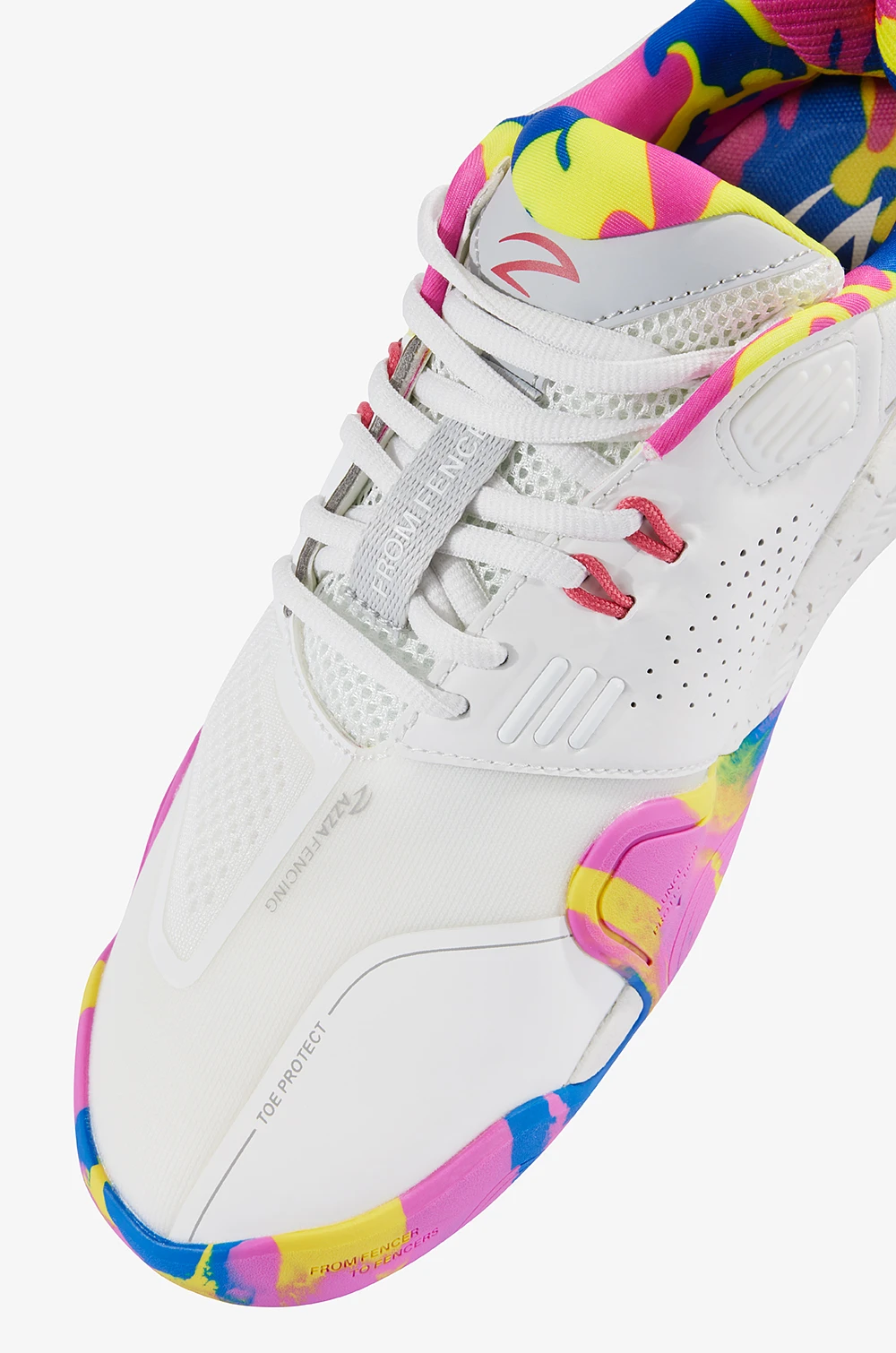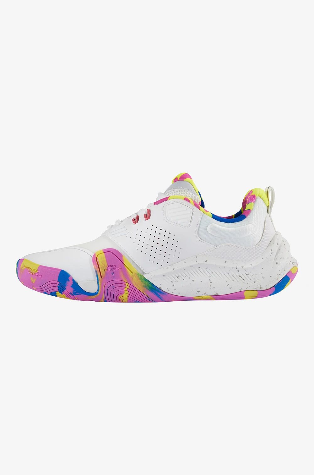 Dieser Fechtschuh wurde von Fechtern für Fechter entwickelt. Jahrelange Erfahrung im professionellen Fechtsport bilden die Grundlage für eine Entwicklung, die auf Funktionalität, Nachhaltigkeit und Leistung ausgerichtet ist. Diese Funktionalität wird aus der Tradition abgeleitet und mit der Evolution des Sports zusammengeführt. Der Fechtschuh 15/14 der tunesischen Säbelfechterin Azza Besbes steht für Professionalität und Innovation. Er besteht aus recyceltem PET, recyceltem Gummi und EVA, PU auf Wasserbasis und recyceltem Karton.