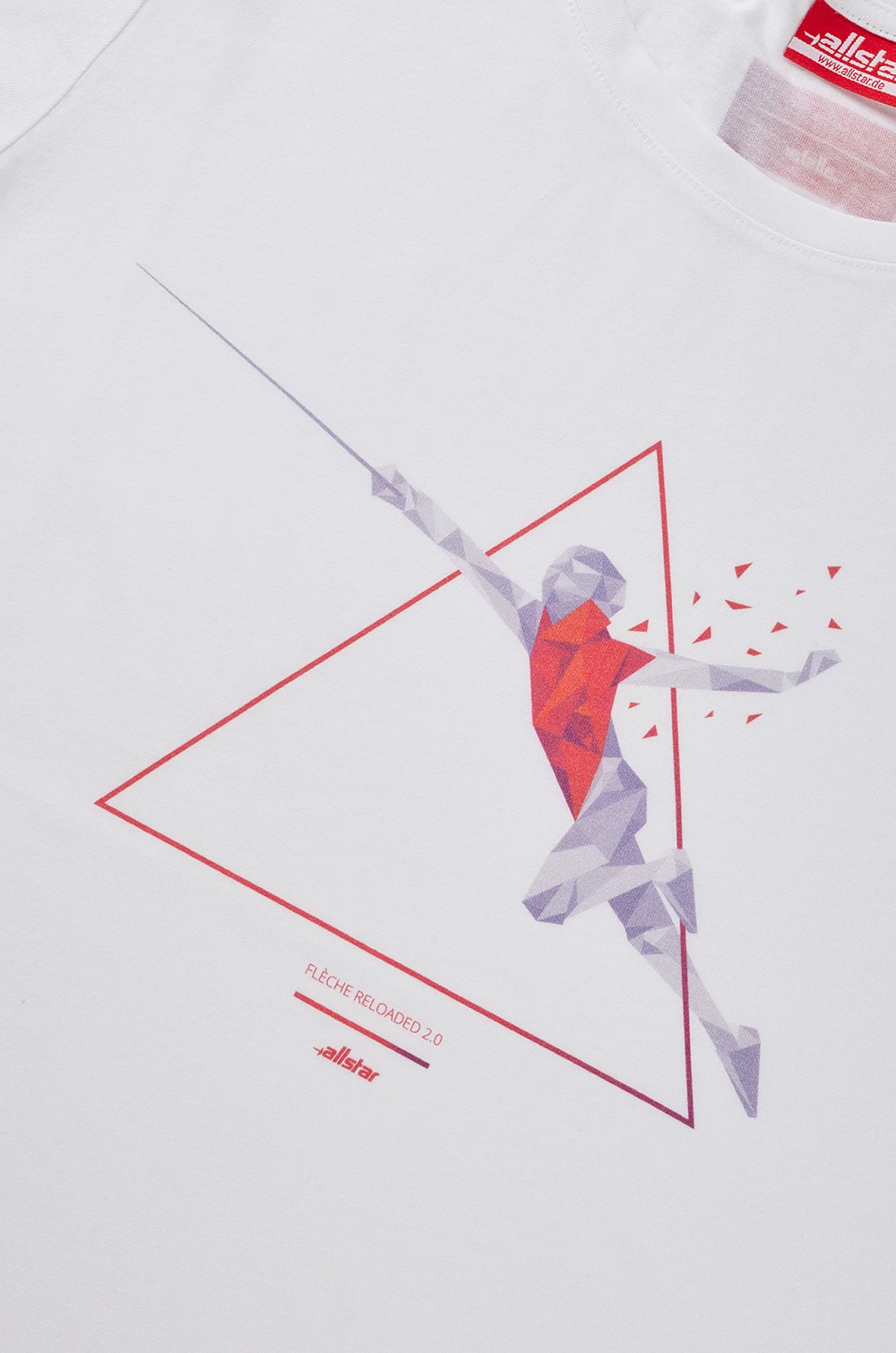 Das zweite unisex T-shirt unserer mehrteiligen „Flèche Reloaded“-Serie. Unser klassiches allstar Motiv jetzt in neuem, geometrisch-linearem Design. Das eher schmal geschnittene und super bequeme T-Shirt aus 100% Baumwolle ist pefrekt für Training und Freizeit.