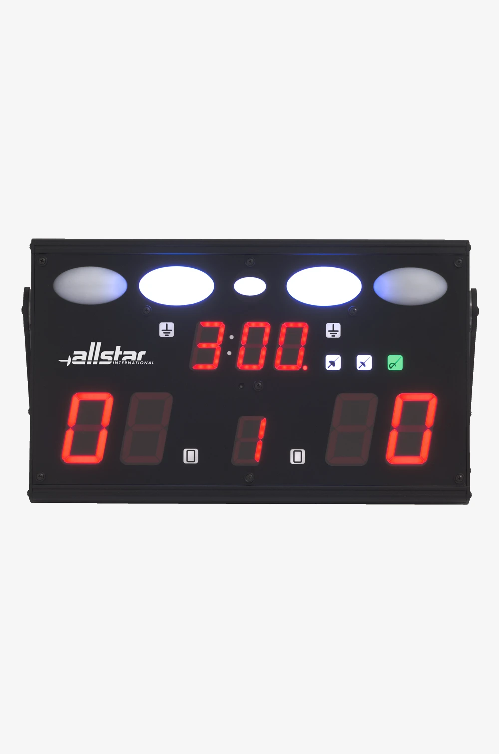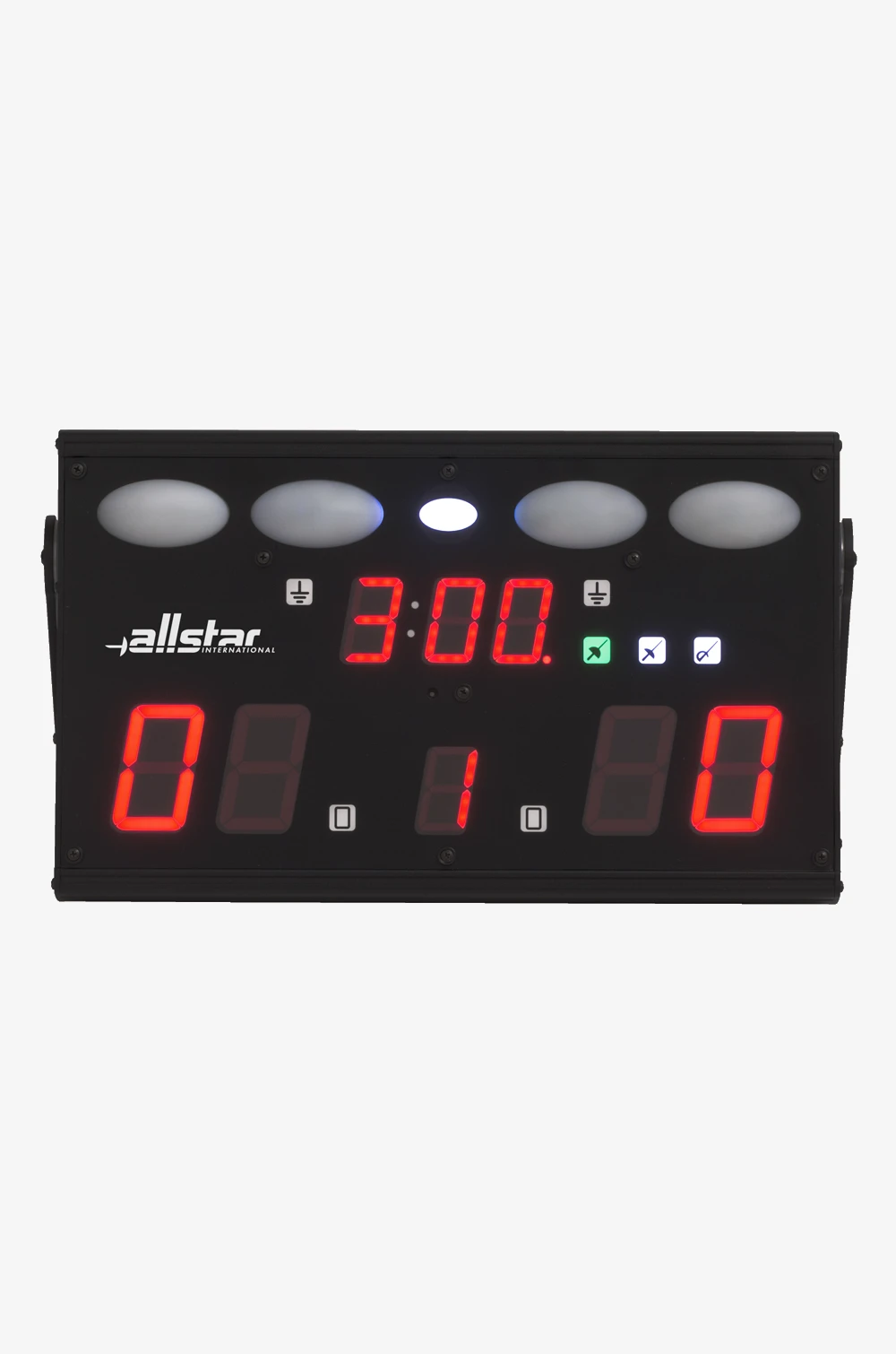 3 Waffen-Melder mit integrierter LED-Anzeige für Gefechtsstand, Kampfzeit und Gefechtsnummer. Mit IR-Fernbedienung und Hochleuchtenanschluss sowie USB-Schnittstelle für Datenübertragung zum PC. Ideal für Training und kleinere Turniere. Nach FIE-Vorschrift Maße: 380mmx230x50mm