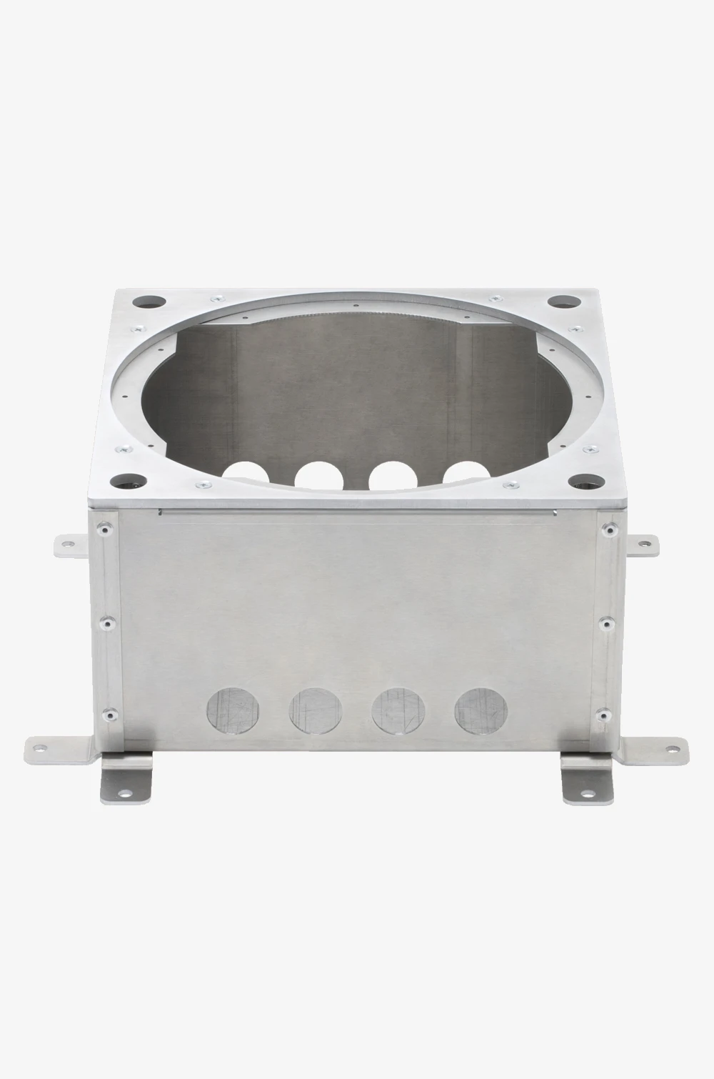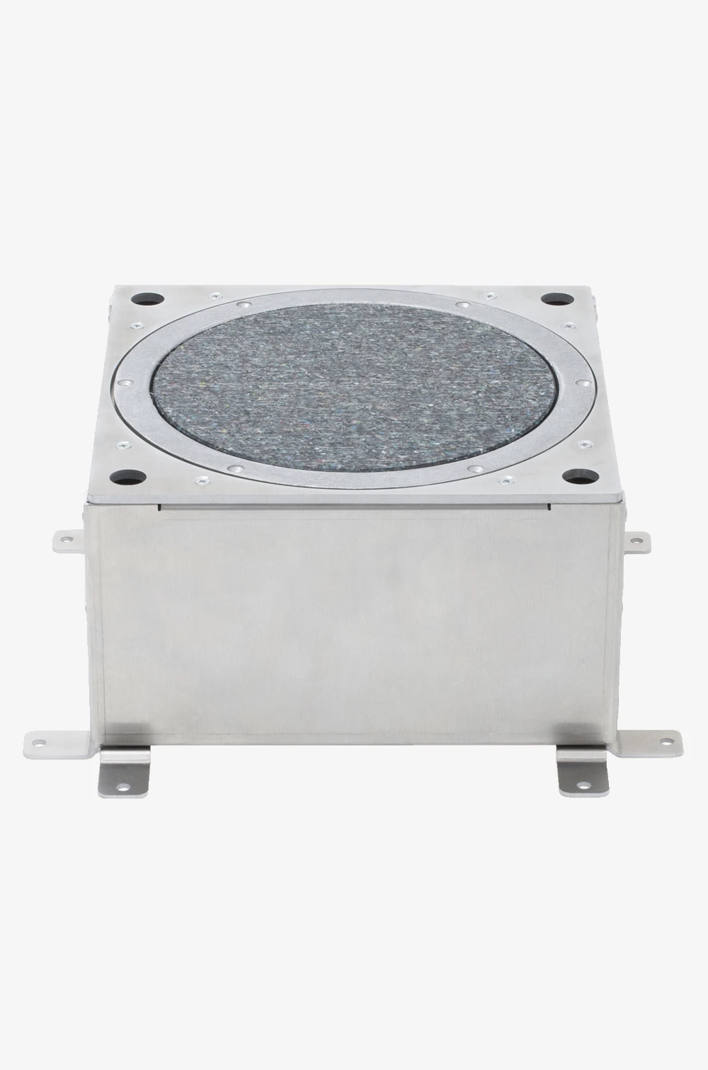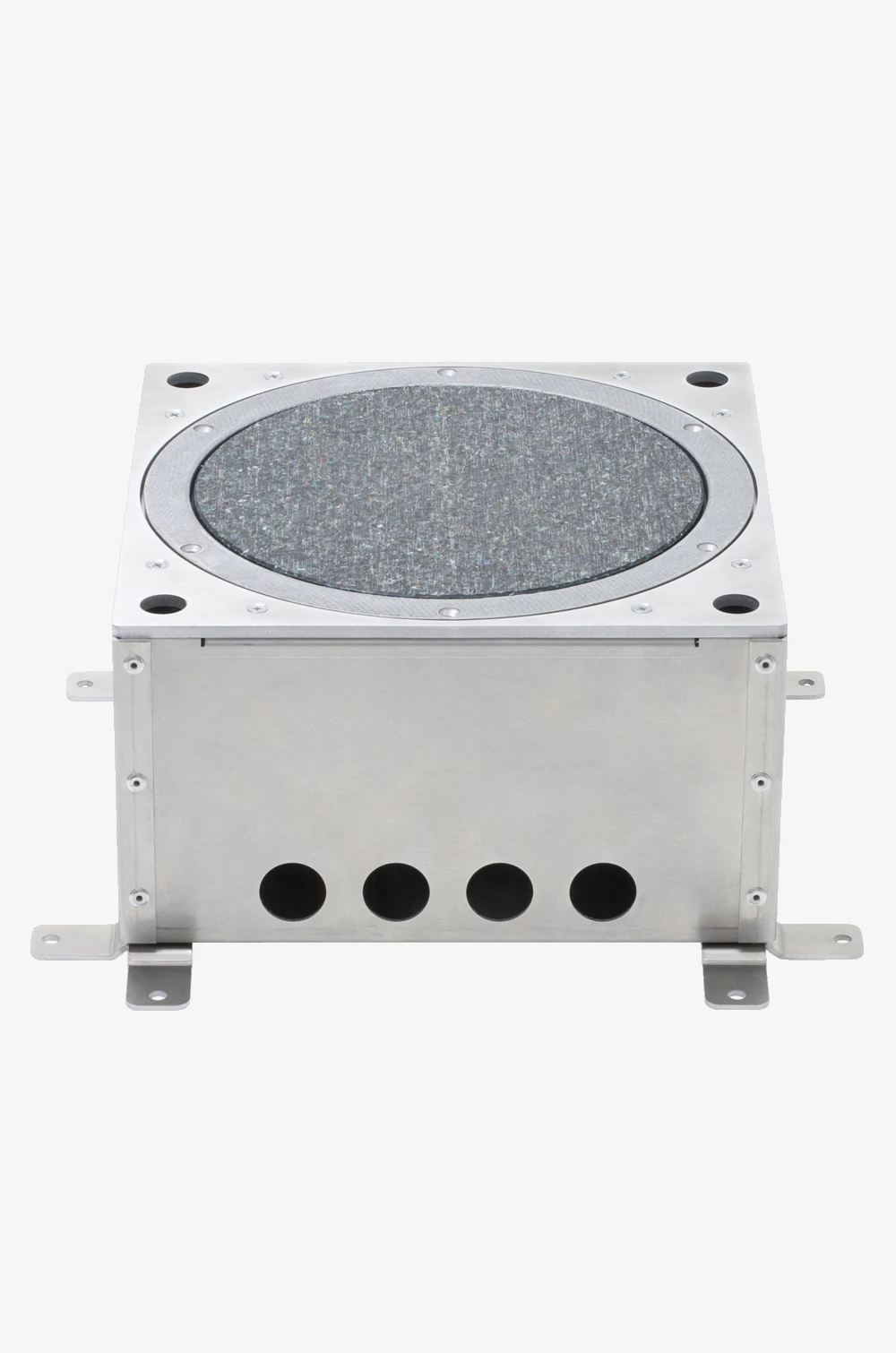 Aus Alublech. Zur Installation der Bodendose BP205 direkt auf dem Rohboden bzw. als Abgrenzung bei Böden mit Schüttung. Mit Montagewinkeln und 4 Gewindestiften zur Höhenverstellung und Nivellierung. 3 runde Öffnungen (25mm Ø) für die Kabelzuführung über Verlegerohre. Einbautiefe verstellbar zwischen ca. 138 bis 178 mm. Längere Verstellwege auf Anfrage möglich). Ca. 256 x 256 x 130 mm Preis auf Anfrage